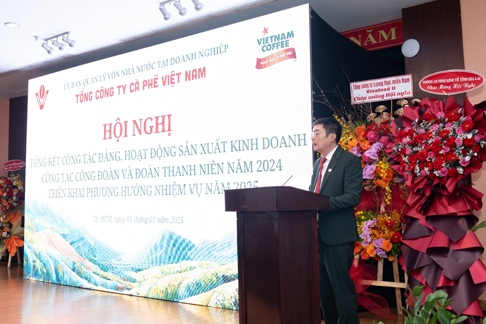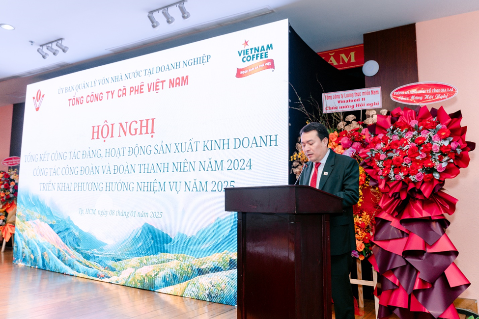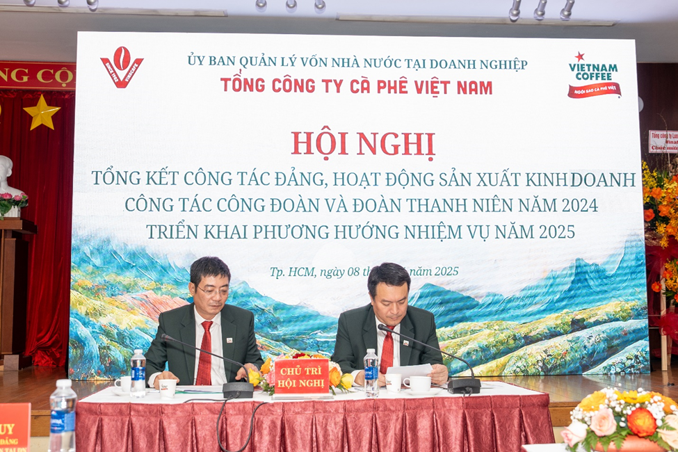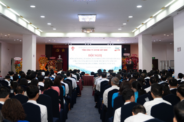 Vừa qua, ngày 08/01/12025 tại Nhà khách Quốc Hội, 165 Nam Kỳ Khởi Nghĩa, Phường 6, Quận 3, Hồ Chí Minh. Tổng công ty Cà phê Việt Nam tổ chức Hội nghị Tổng kết công tác Đảng, hoạt động sản xuất kinh doanh, công tác Đoàn và Đoàn thanh niên năm 2024 và triển khai phương hướng nhiệm vụ năm 2025.