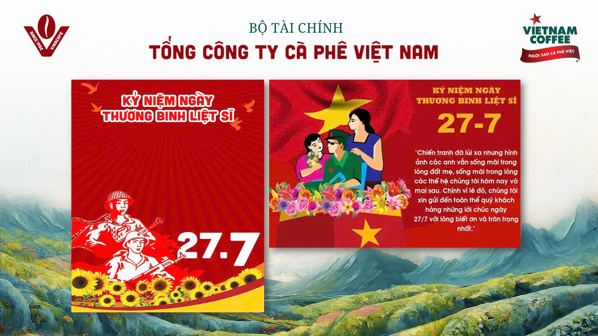 Kỷ niệm 78 năm ngày Thương binh - Liệt sĩ (27/7/1947-27/7/2025), Sáng ngày 27/7/2025, Nhân kỷ niệm 78 năm Ngày Thương binh - Liệt sỹ (27/7/1947 - 27/7/2025), thực hiện sự chỉ đạo của Ban Thường vụ Đảng ủy, Hội đồng thành viên, Ban Điều hành, Công đoàn Tổng công ty Cà phê Việt Nam, Đoàn thanh niên Tổng công ty đã tổ chức các hoạt động dâng hương, tri ân các Anh hùng liệt sỹ tại nghĩa trang liệt sỹ huyện Củ Chi, thành phố Hồ Chí Minh.