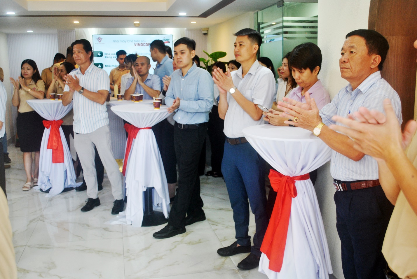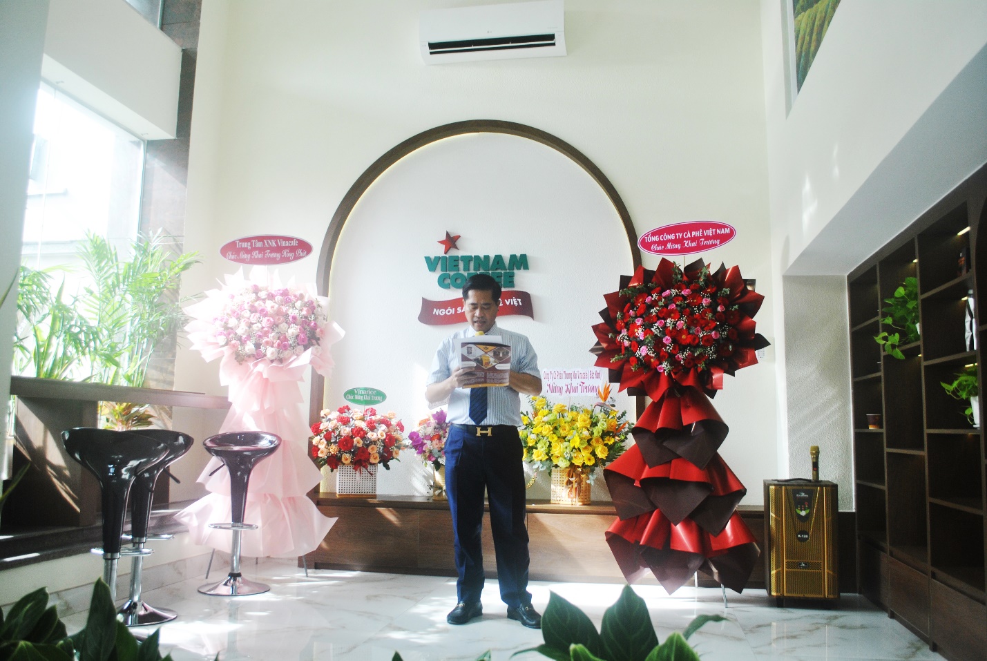Lễ khai trương diễn ra trong không khí trang trọng và phấn khởi. Đặc biệt được sự quan tâm và chỉ đạo của Lãnh đạo Tổng công ty Cà phê Việt Nam Lễ khai trương đã hoàn thành tốt đẹp.