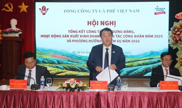 Ngày 25/12, Tổng công ty Cà phê Việt Nam đã tổ chức Hội nghị Tổng kết công tác xây dựng Đảng, hoạt động sản xuất kinh doanh, công tác Công đoàn năm 2025 và triển khai phương hướng, nhiệm vụ năm 2026.